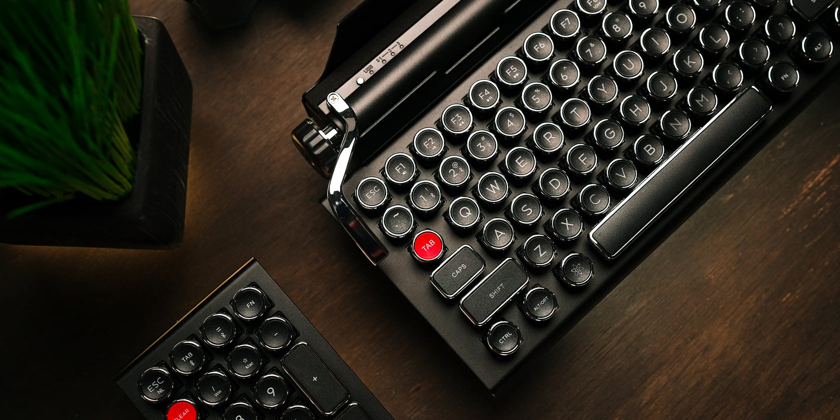 With premium German engineered mechanical blue switches, extra long-lasting batteries, and newly improved wireless BT and USB-C components, you can be sure the Qwerkywriter can keep up with your every creative spark.