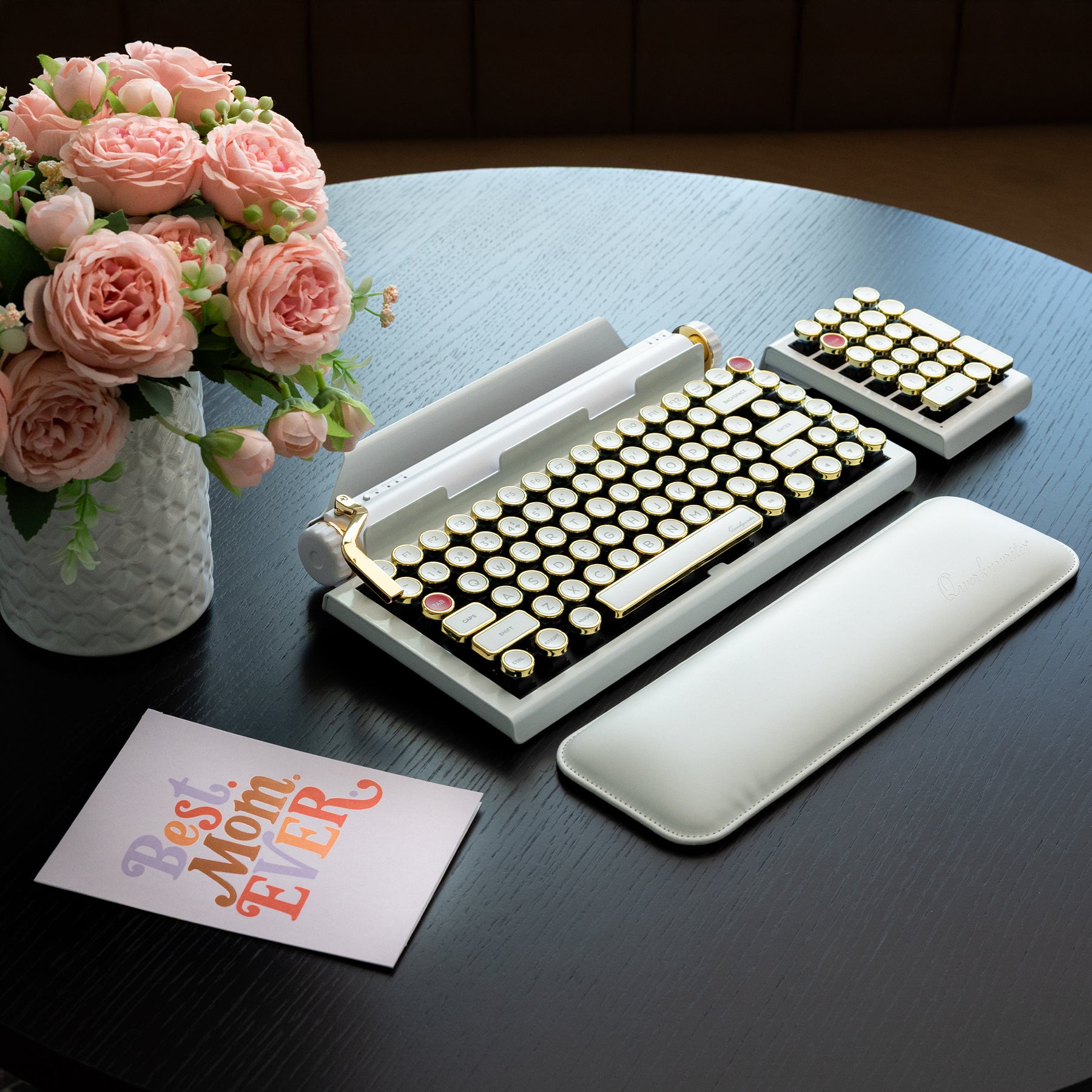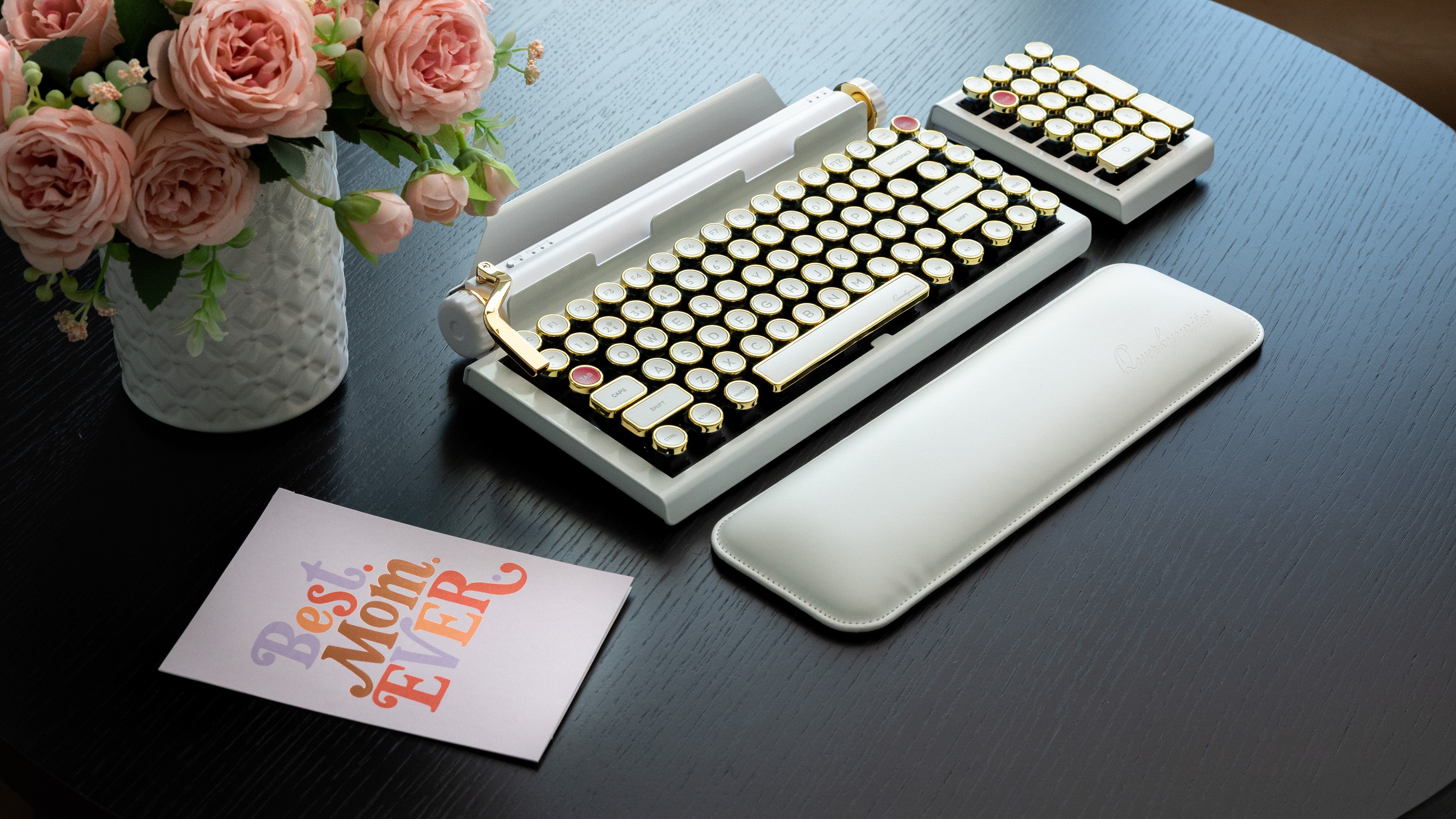 The Qwerkywriter® is a modern typewriter-inspired mechanical keyboard designed for writers, creatives, and professionals who value both form and function. It captures the look and feel of a vintage typewriter, reimagined for today’s devices. First introduced on Kickstarter in 2014, Qwerkywriter® pioneered an entirely new category of keyboards—now known as typewriter keyboards.