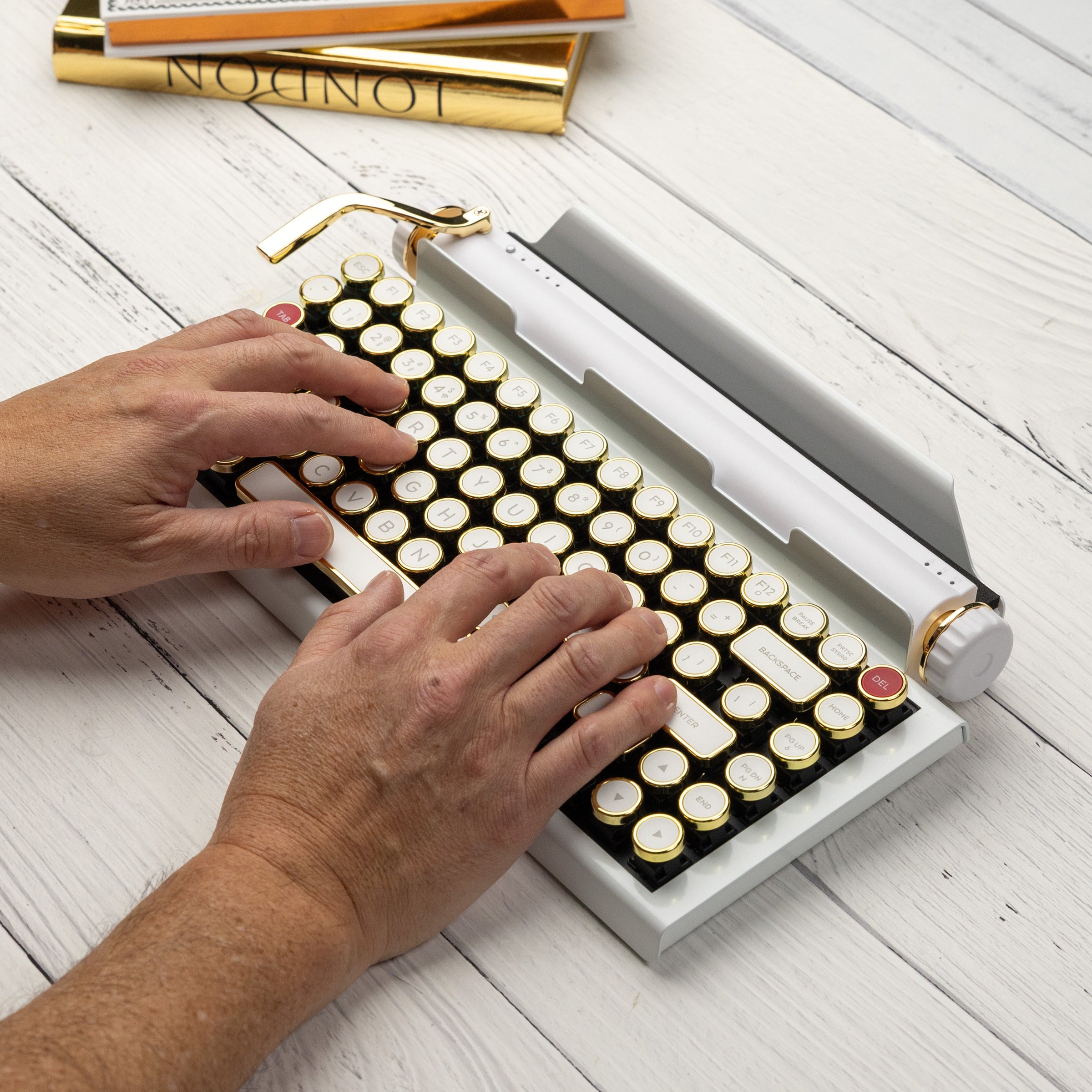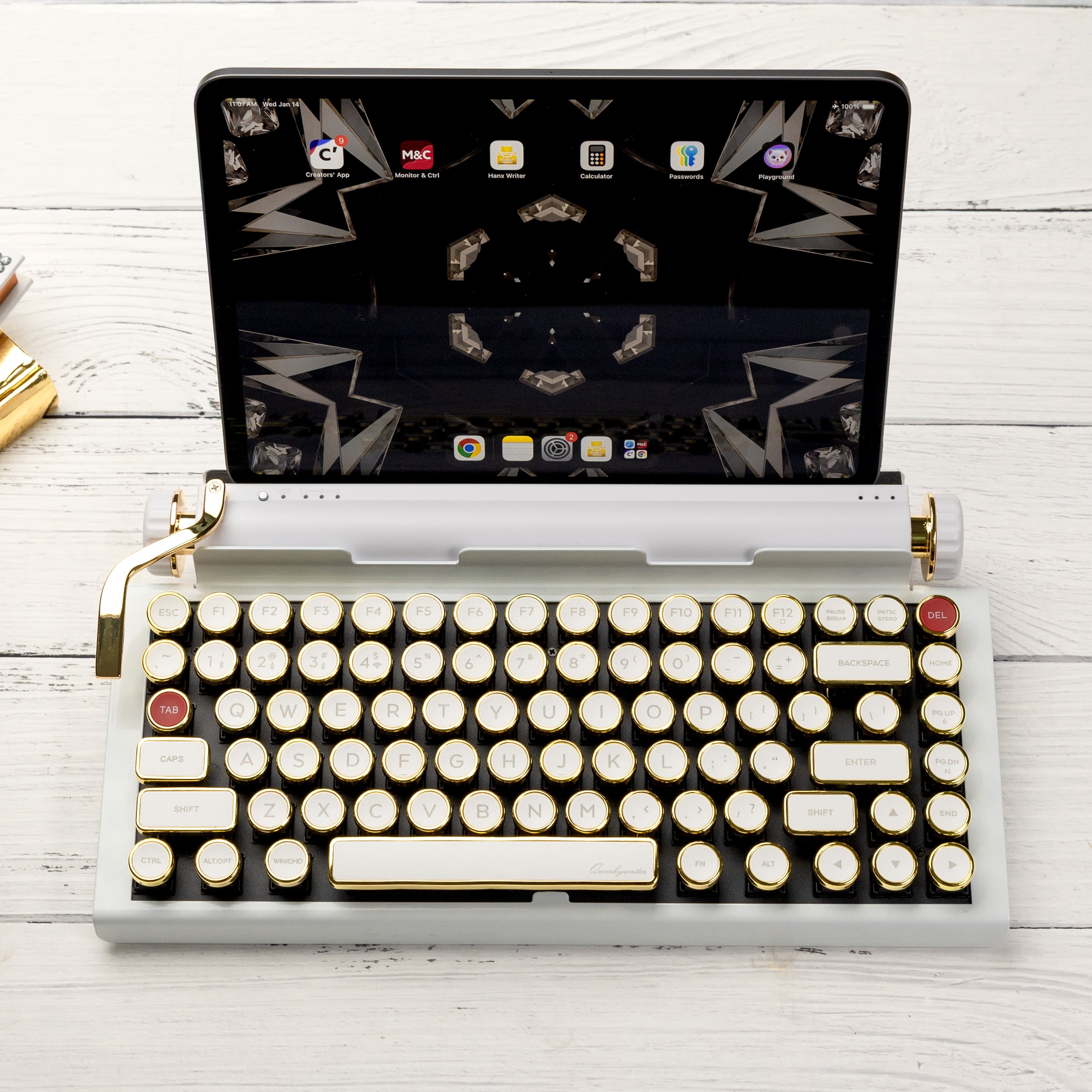 QWERKYWRITER 2 LIMITED WHITE GOLD Next Gen Hot Swap Tri Mode Typewriter Keyboard